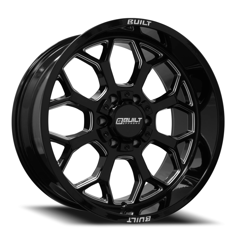 Axe BTO-1 wheel features size 20" x 10", Gloss Black / Milled Black / Milled finish, 8×180 bolt pattern, -19mm offset.
