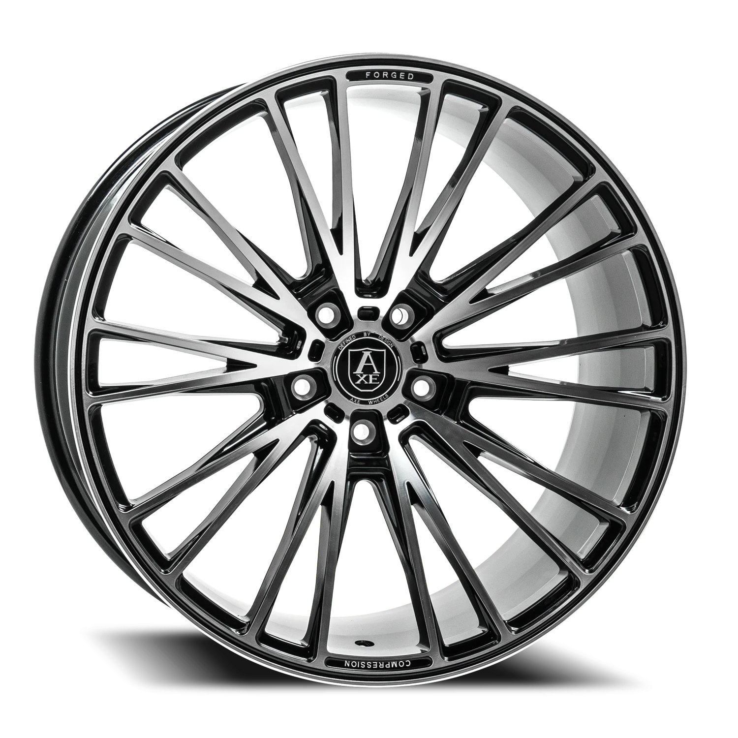 Axe CF2 wheel features size 20" x 8.5", Black / Polished Face Black / Polished Face finish, 5×115 bolt pattern, +40mm offset.