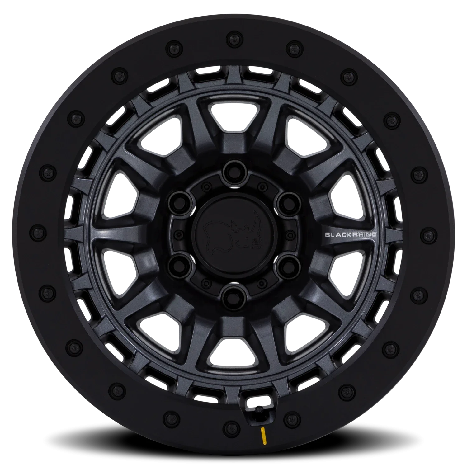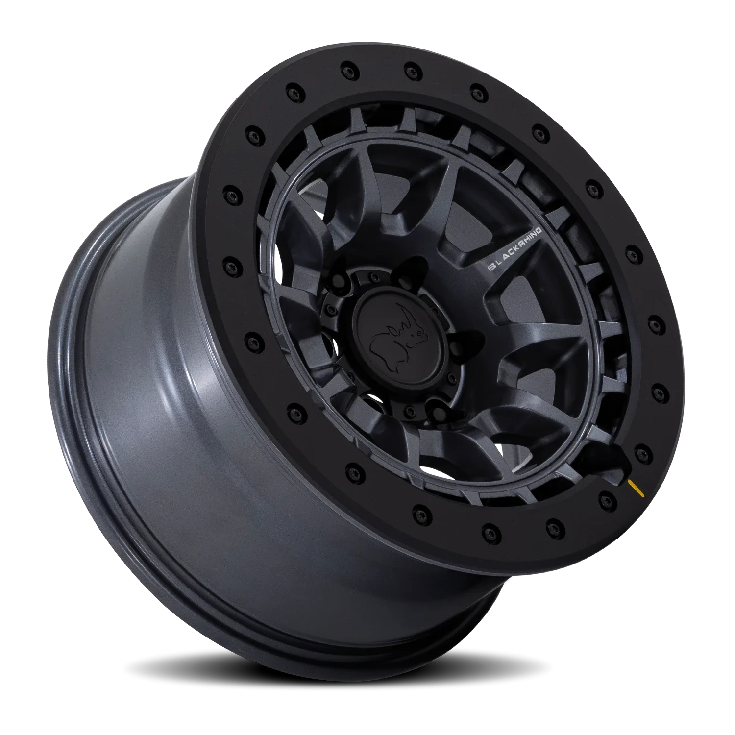 Gunmetal, Matte Black Rhino Tusk wheels.