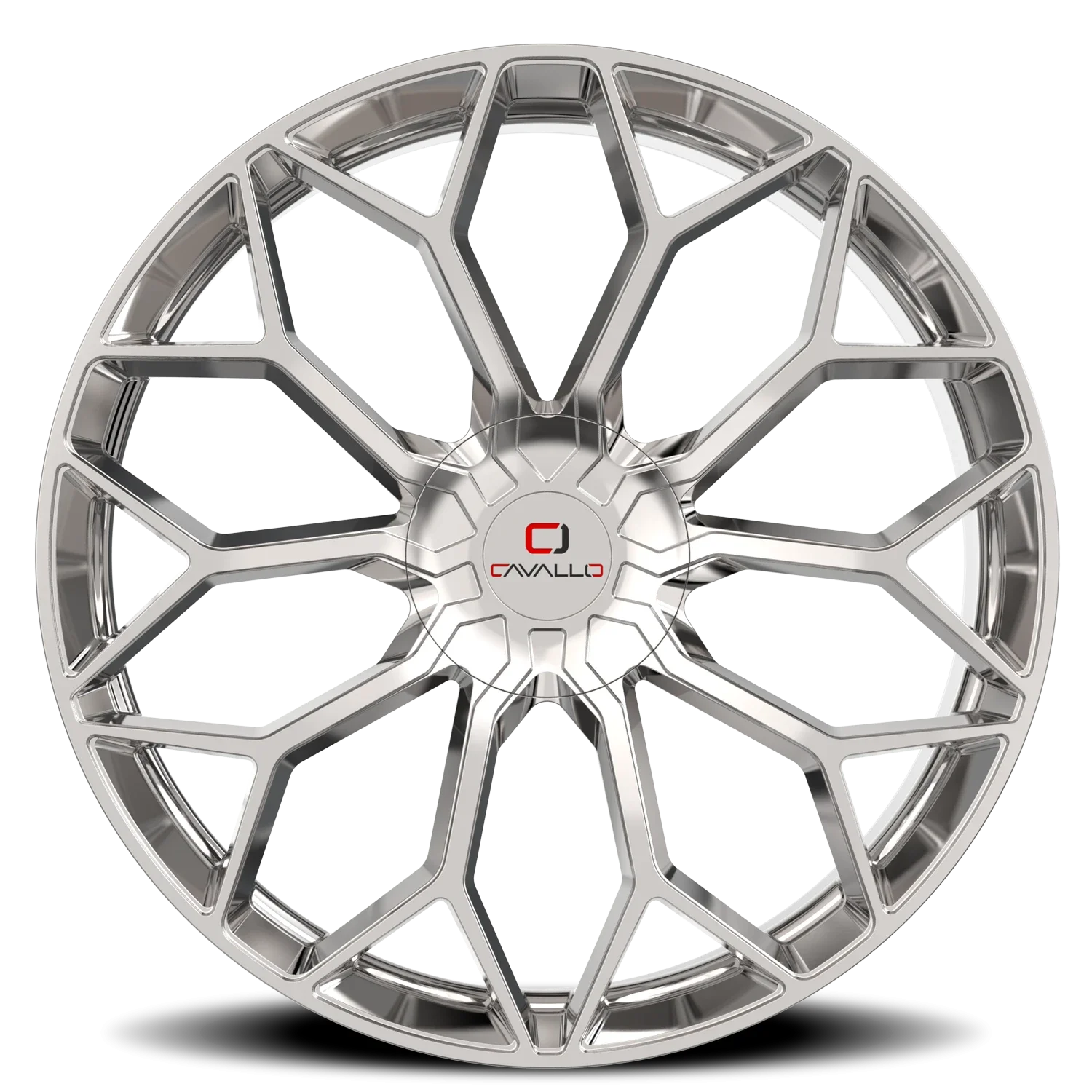 Cavallo CLV-44 wheel features size 20" x 8.5", Chrome Nano Chrome finish, 5×108/5×114.3 bolt pattern, +35mm offset.