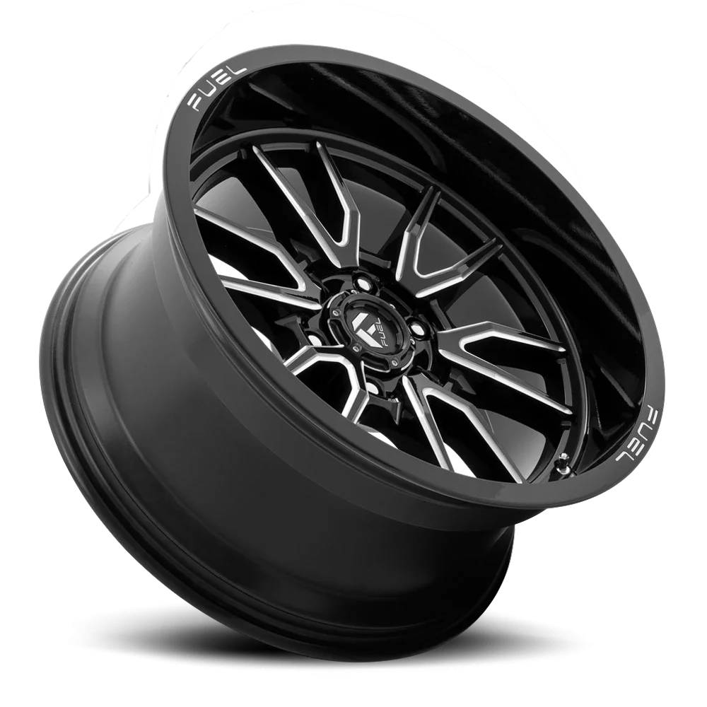 Fuel Clash 6 D761 wheel features size 20" x 9", Black, Gloss Black / Milled finish, 8×180 bolt pattern, +1mm offset.