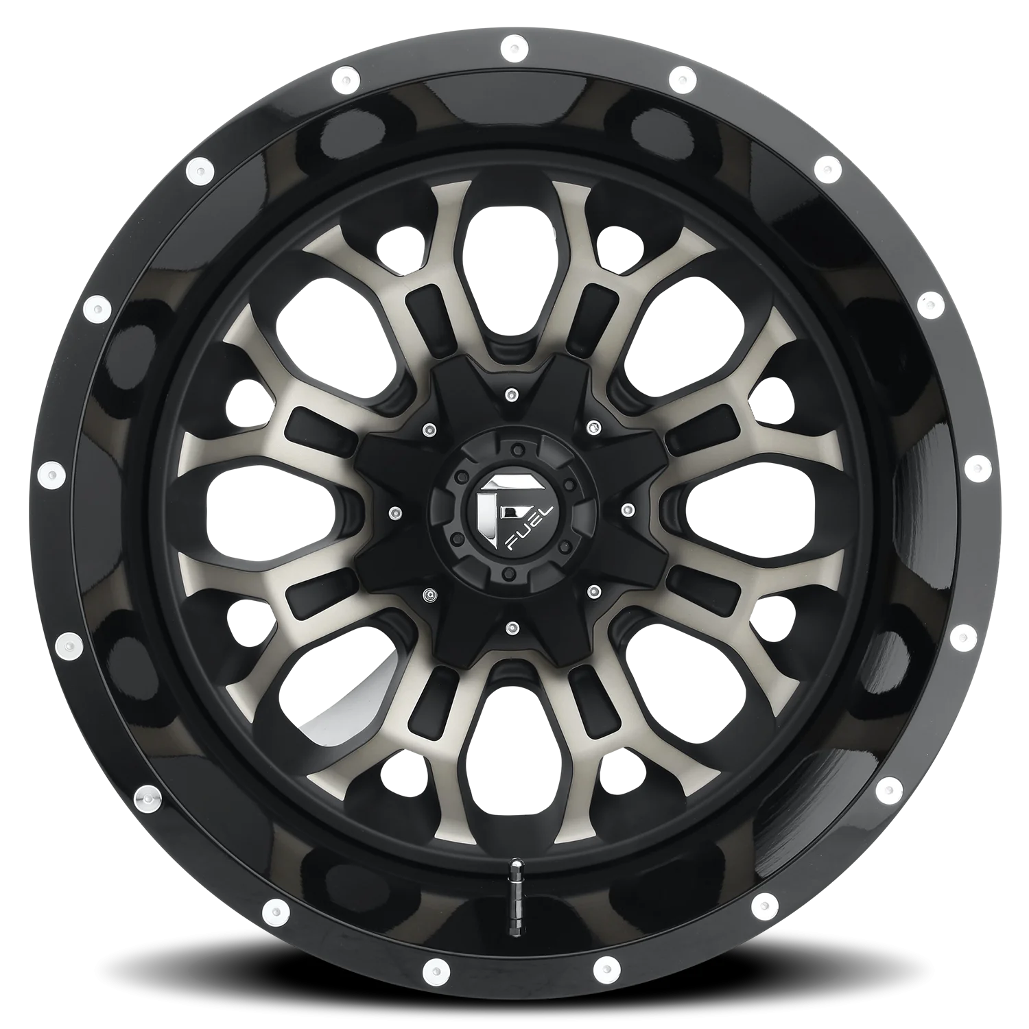 Fuel Crush D561 wheel features size 20" x 9", Black, Gloss Black / Double Dark Tint-Machined Face finish, 8×170 bolt pattern, +1mm offset.