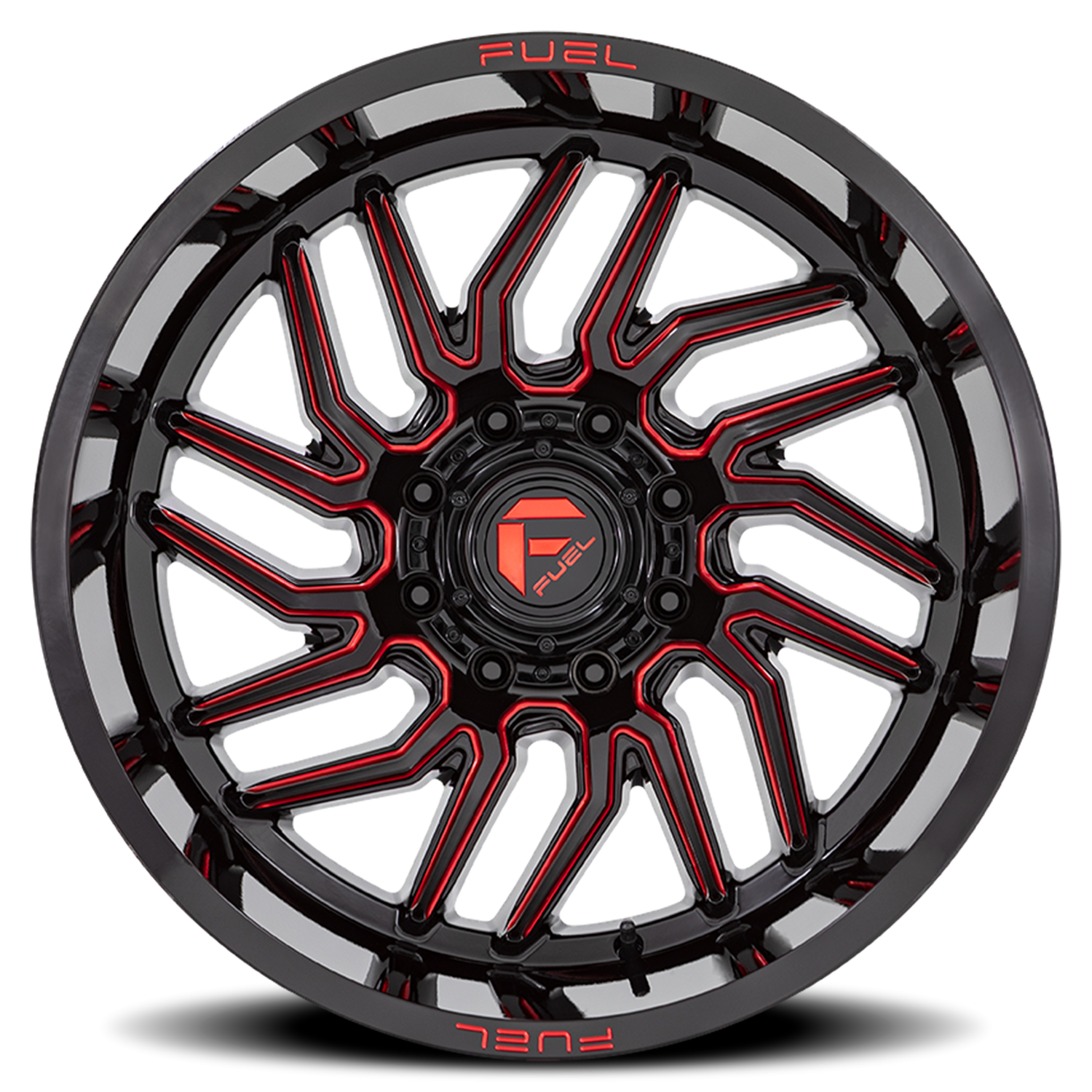 Fuel Hurricane D808 wheel features size 20" x 10", Gloss Black / Red Milled Black / Red Milled finish, 5×139.7 bolt pattern, -18mm offset.