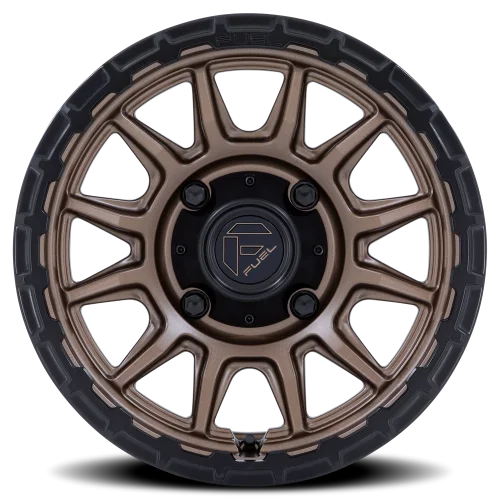 Fuel Piston UTV FV866ZB wheel features size 15" x 7", Bronze, Matte Bronze / Matte Black Lip finish, 5×114.3 bolt pattern, +38mm offset.