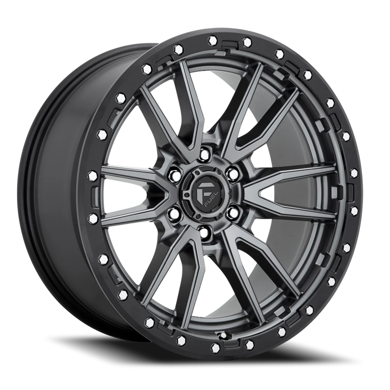 Fuel Rebel D680 wheel features size 20" x 9", Gunmetal, Matte Gunmetal / Black Bead Ring finish, 6×135 bolt pattern, +1mm offset.