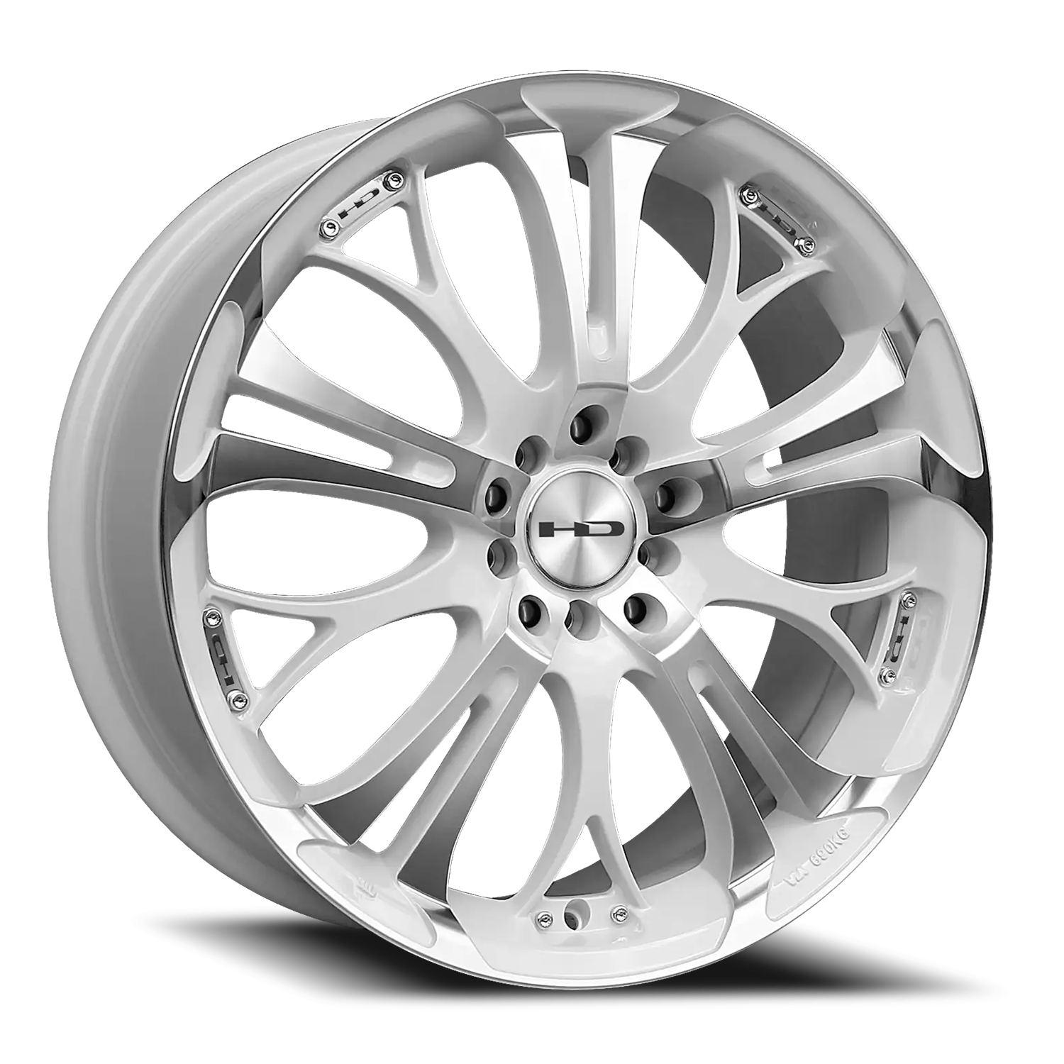 HD Wheels Spinout wheel features size 20" x 8", Gloss White / Machined Face White / Machined Face finish, 5×115/5×120 bolt pattern, +20mm offset.
