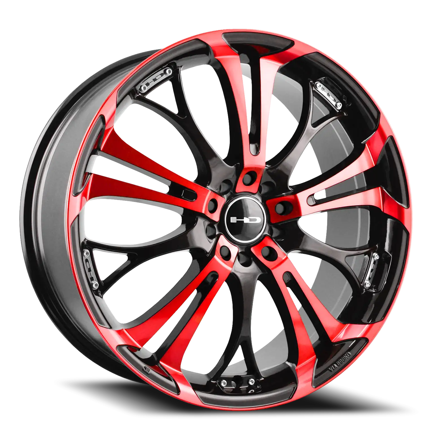 HD Wheels Spinout wheel features size 22" x 8.5", Gloss Black / Machined Face-Red Clear Black / Machined Face-Red Clear finish, 5×115/5×120 bolt pattern, +20mm offset.