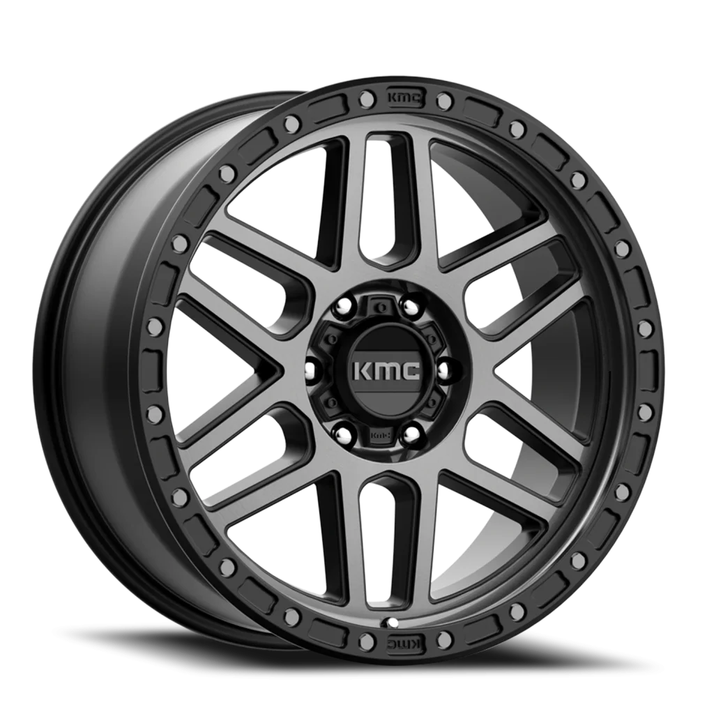KMC Mesa KM544 GY wheel features size 20" x 9", Black, Satin Black / Gray Tint finish, 8×180 bolt pattern, +18mm offset.