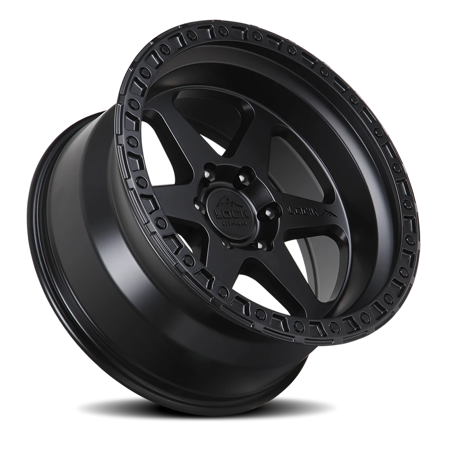 Lock Offroad Olympus wheel features size 20" x 9", Black, Matte Black / Matte Black Ring finish, 6×135 bolt pattern, +0mm offset.