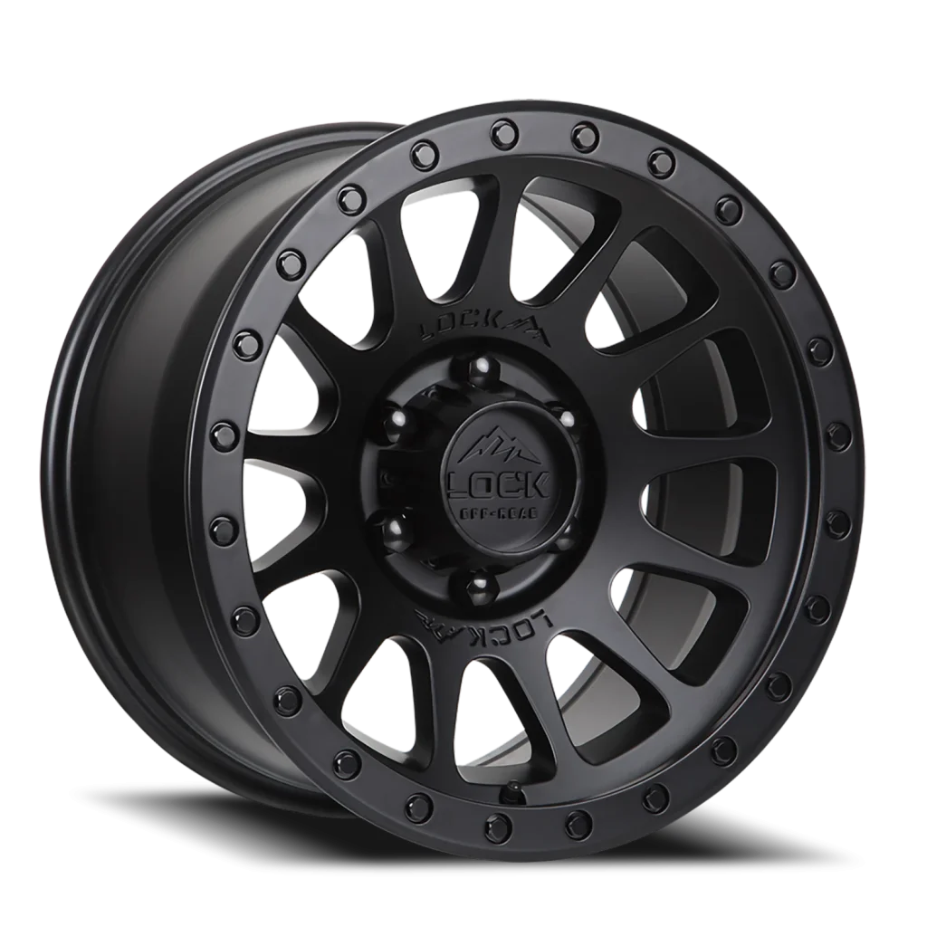 Lock Offroad Yosemite wheel features size 17" x 9", Black, Matte Black / Matte Black Ring finish, 6×139.7 bolt pattern, +0mm offset.