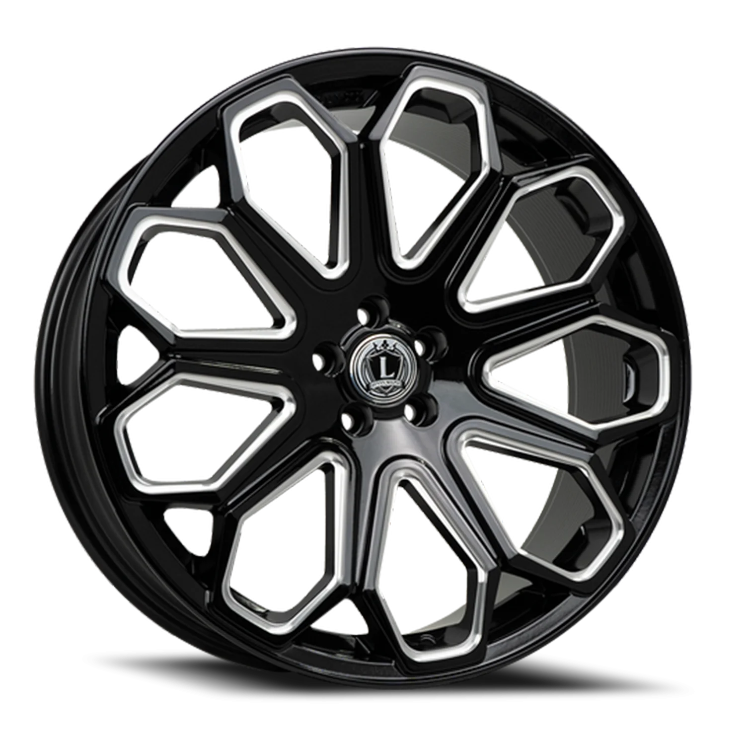 Luxxx Alloys 29 wheel features size 22" x 9", Black, Gloss Black / Milled finish, 5×115 bolt pattern, +15mm offset.