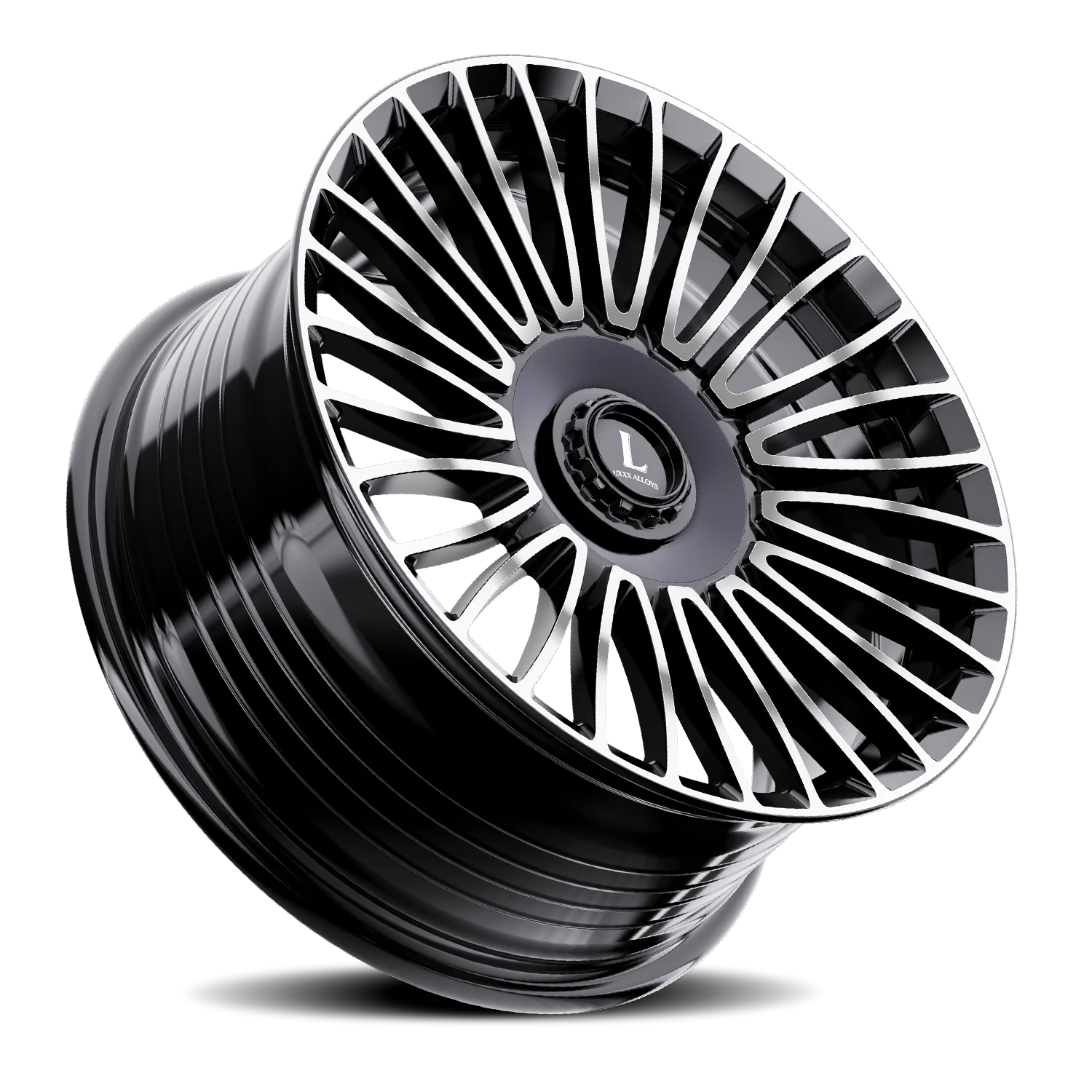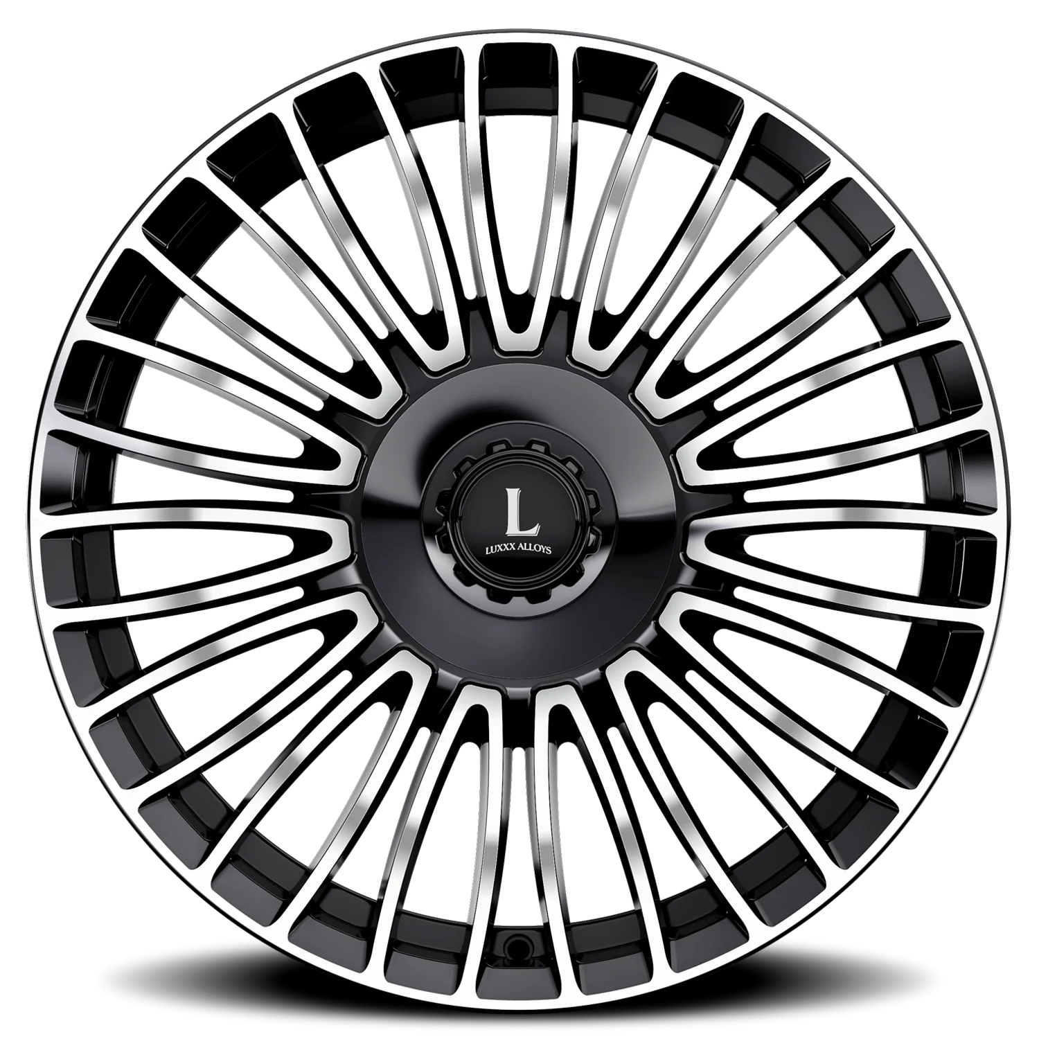 Luxxx Alloys 49 wheel features size 22" x 9", Black, Gloss Black / Machined finish, 5×114.3/5×130 bolt pattern, +30mm offset.