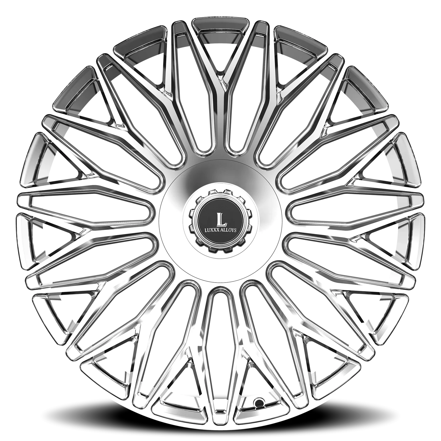 Luxxx Alloys 53 wheel features size 20" x 8.5", Chrome finish, 5×114.3/5×120 bolt pattern, +35mm offset.