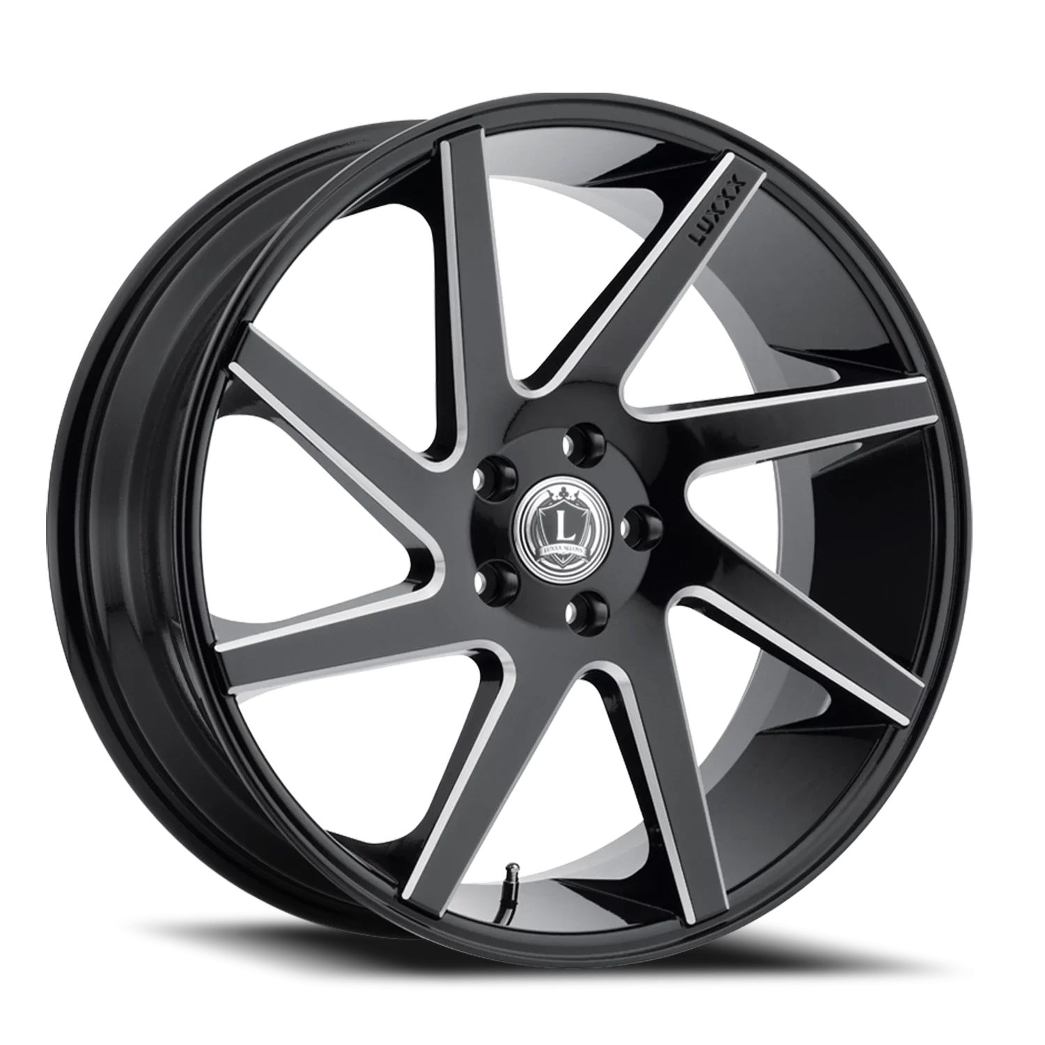Luxxx Alloys 8 wheel features size 24" x 10", Black, Gloss Black / Milled finish, 6×139.7 bolt pattern, +30mm offset.