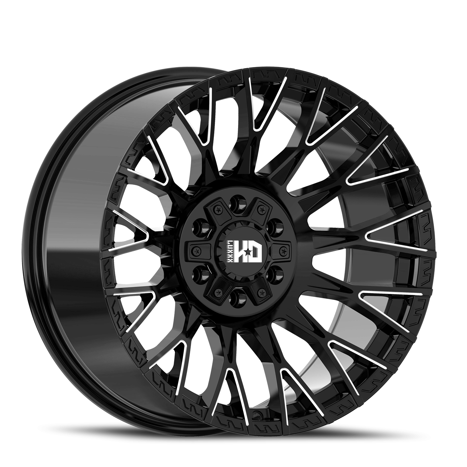 Luxxx HD LHD43 wheel features size 20" x 10", Gloss Black / Milled Black / Milled finish, 8×165 bolt pattern, -19mm offset.