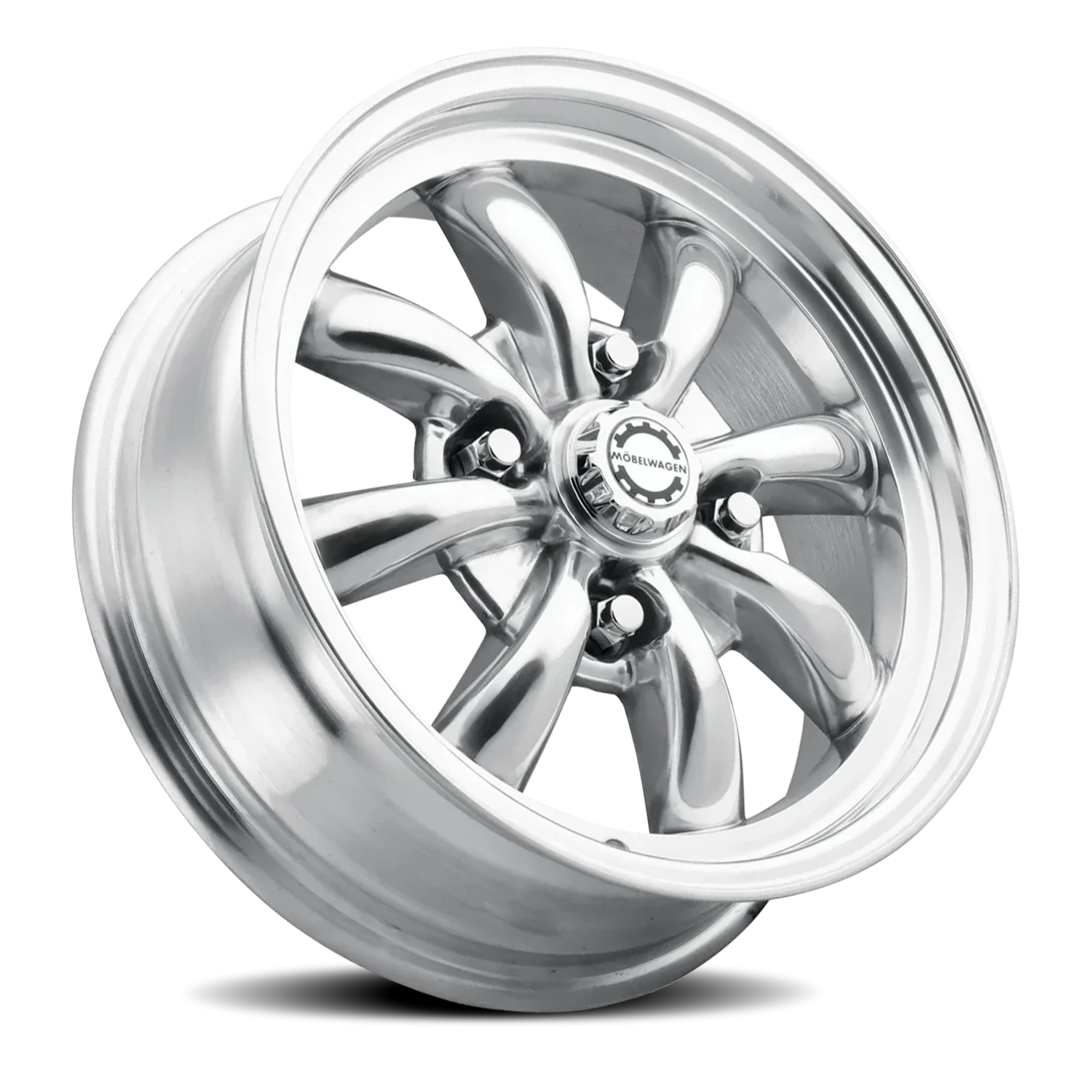 Mobelwagen 731P Blitz wheel features size 15" x 5.5", Polished finish, +20mm offset.