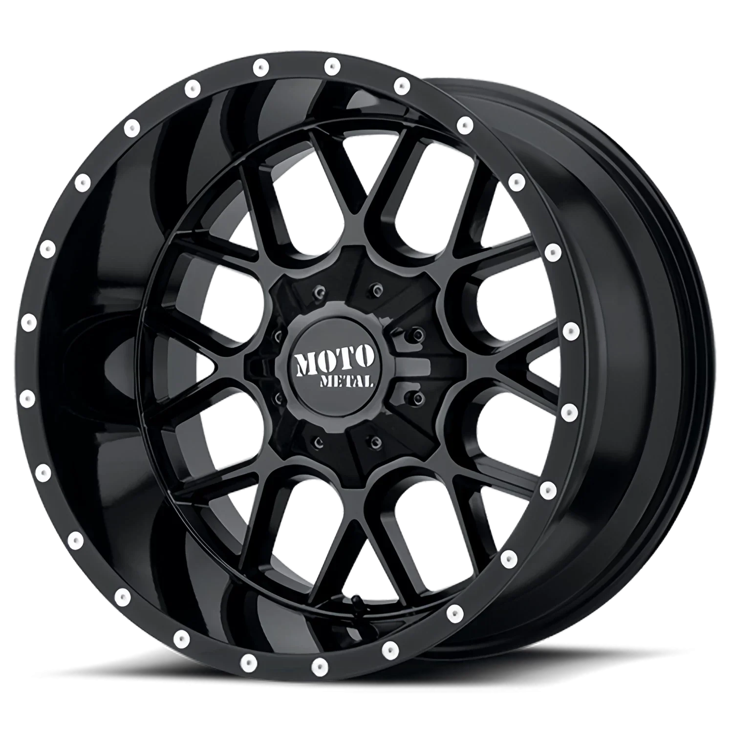Moto Metal MO986 wheel features size 22" x 10", Black, Gloss Black finish, 6×135/6×139.7 bolt pattern, -18mm offset.