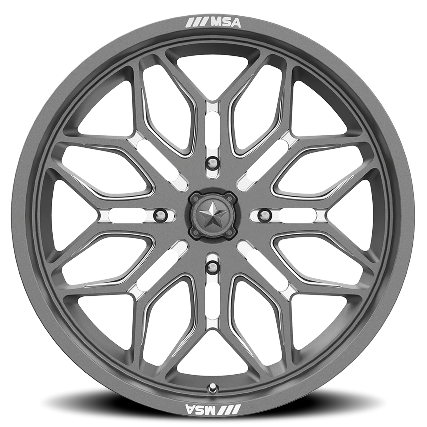 MSA Sniper M47 G-M wheel features size 22" x 7", Gunmetal / Milled Gunmetal / Milled finish, 4×156 bolt pattern, +10mm offset.