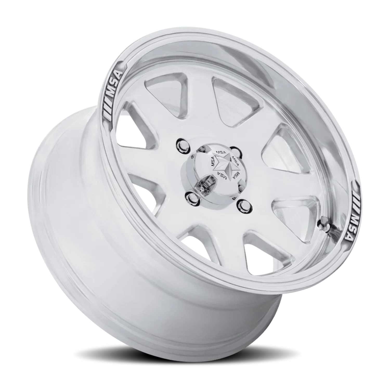 Polished MSA Spark UTV wheels. ET10