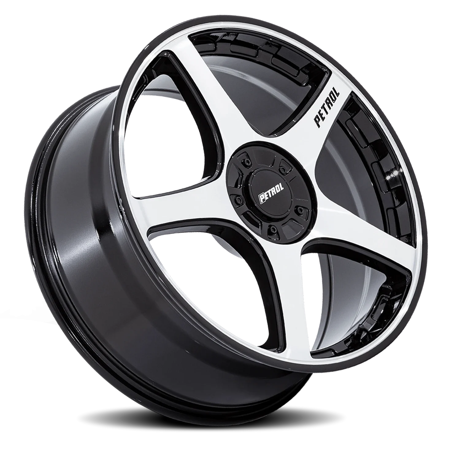 Petrol P2E wheel features size 20" x 8.5", Black, Gloss Black / Machined Face finish, 5×110/5×115 bolt pattern, +40mm offset.