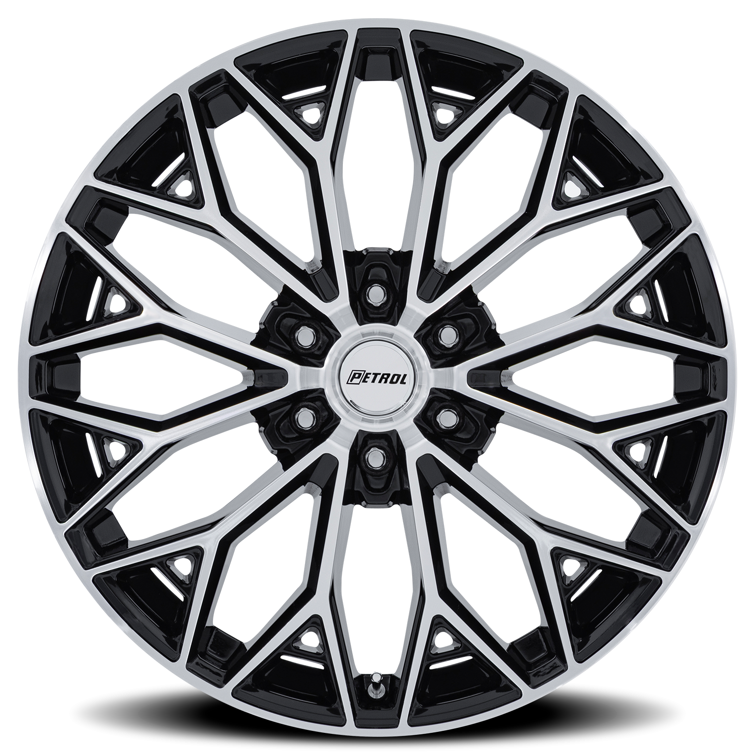 Petrol P5E wheel features size 22" x 9.5", Gloss Black / Machined Face Black / Machined Face finish, 6×139.7 bolt pattern, +25mm offset.