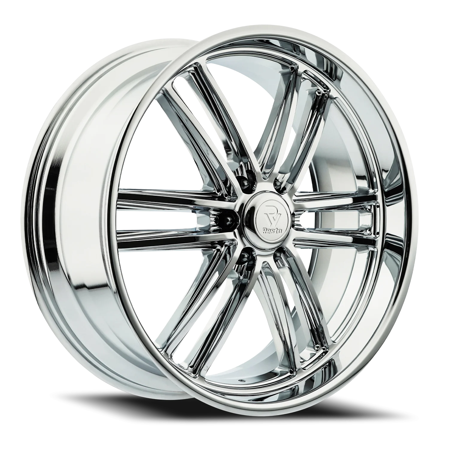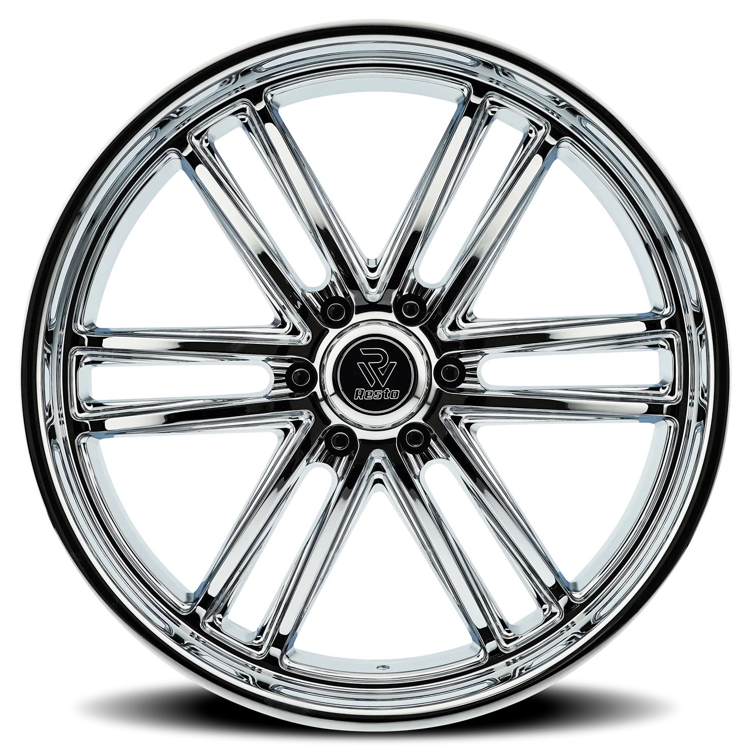 Resto R103 C wheel features size 24" x 10", Chrome Chrome Plated / Milled Window finish, 6×135 bolt pattern, +25mm offset.