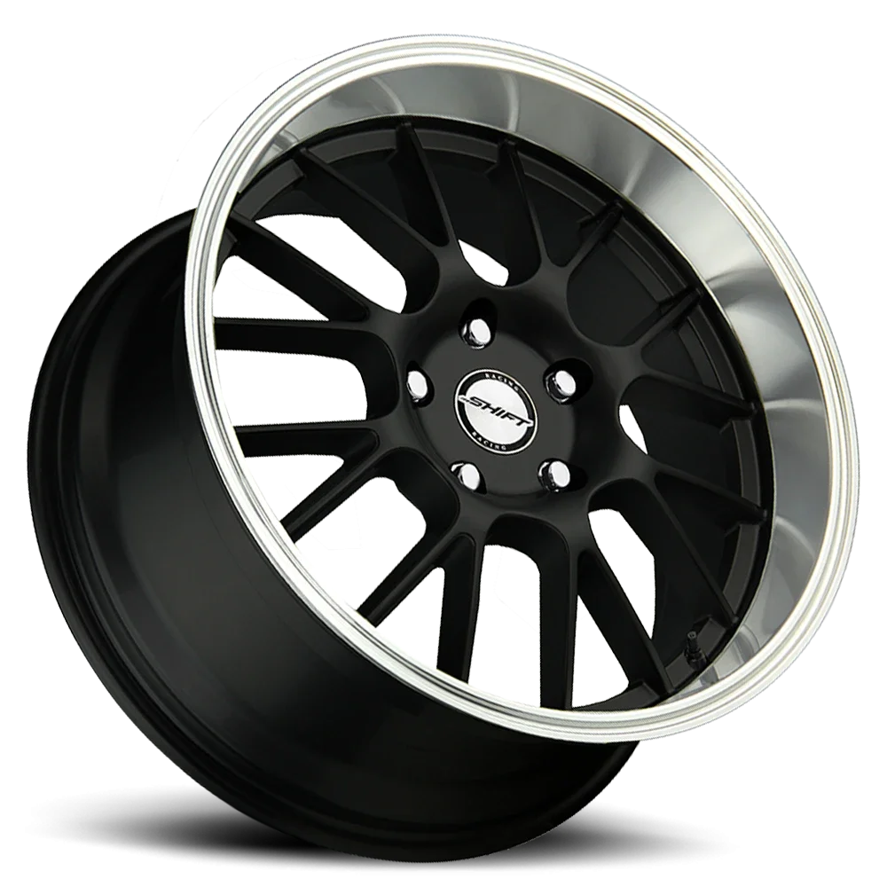 Shift Crank wheel features size 18" x 8.5", Black / Polished Lip Black / Polished Lip finish, 5×100/5×114.3 bolt pattern, +30mm offset.