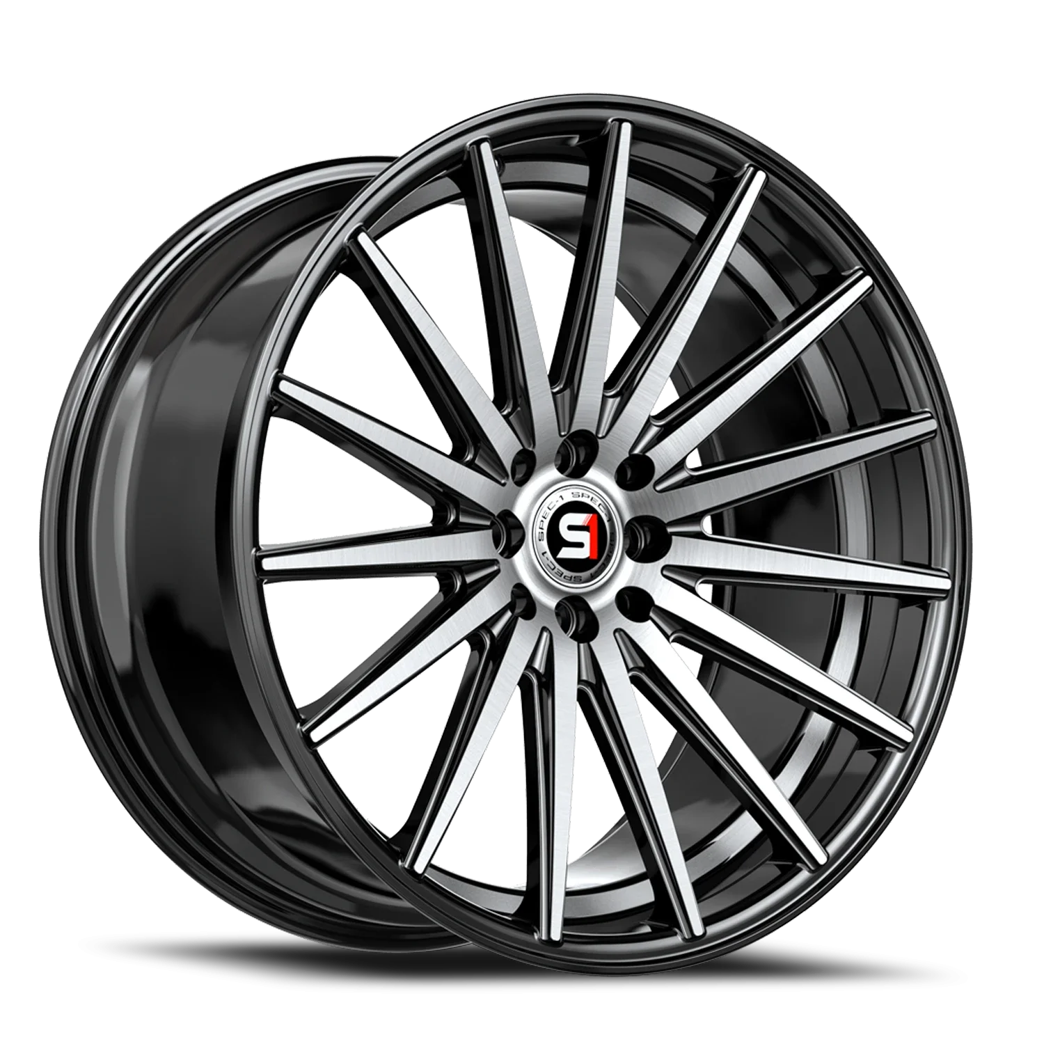 Spec-1 SP-69 wheel features size 17" x 7.5", Black, Gloss Black / Machined-Undercut finish, 5×108/5×114.3 bolt pattern, +42mm offset.