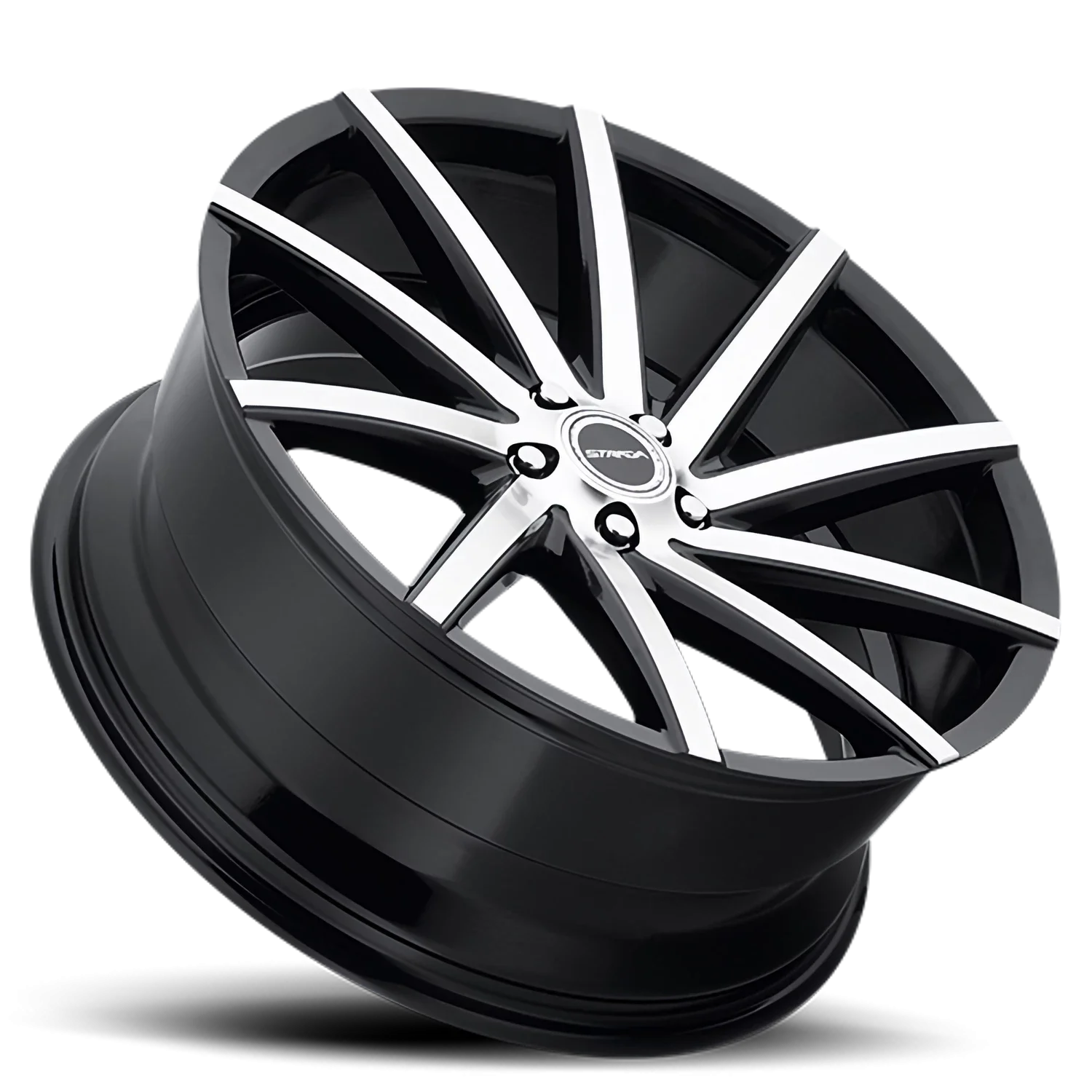 Strada Sega wheel features size 22" x 9", Black, Gloss Black / Machined finish, 5×112 bolt pattern, +35mm offset.