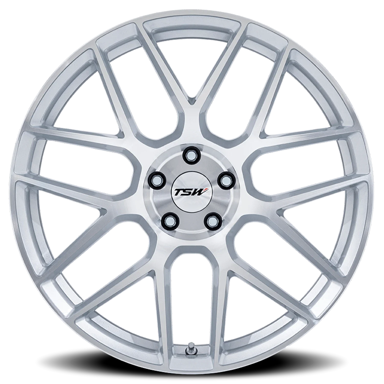 TSW Lasarthe wheel features size 18" x 9.5", Gloss, Silver Silver / Machined finish, 5×114.3 bolt pattern, +25mm offset.