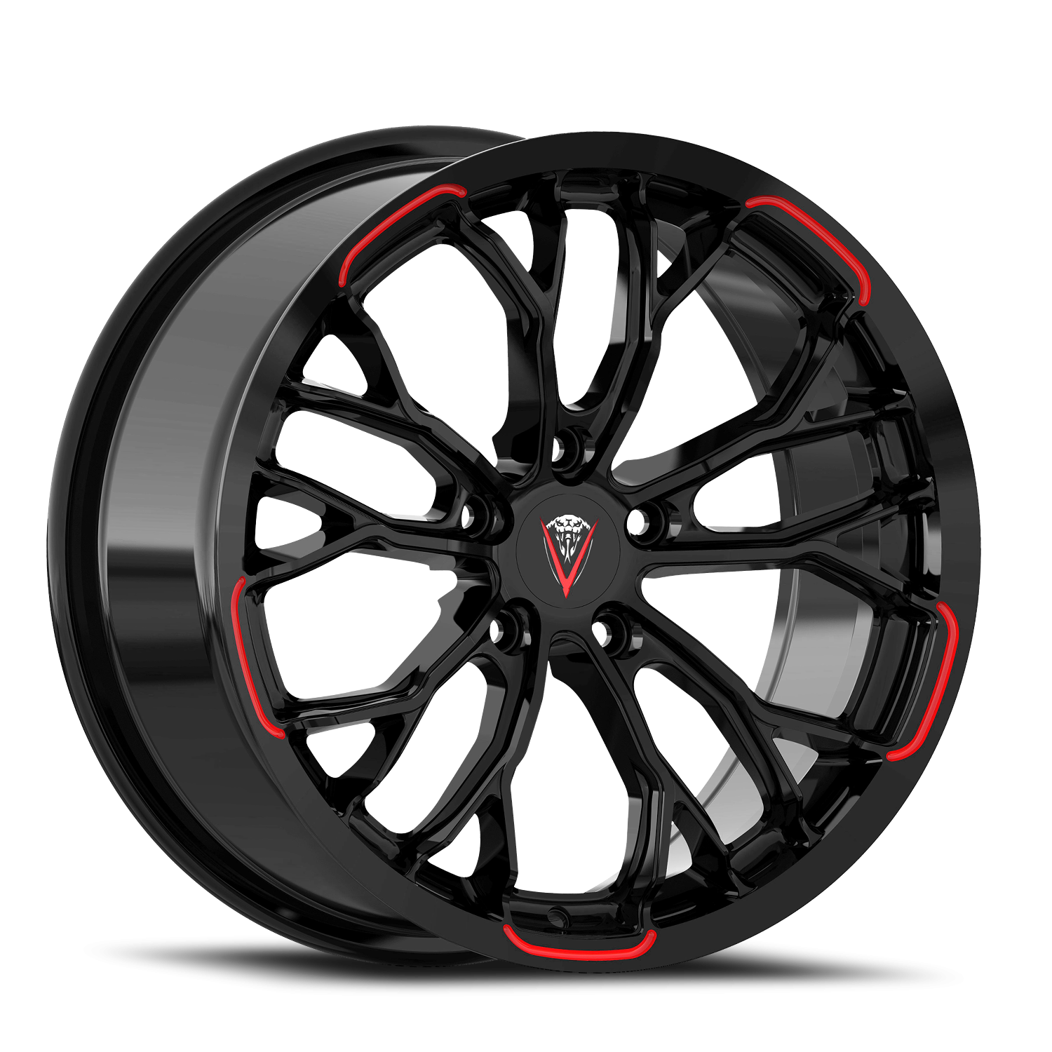 Venom Sport 53 wheel features size 18" x 8.5", Gloss Black / Red Milled Black / Red Milled finish, 5×114.3 bolt pattern, +35mm offset.