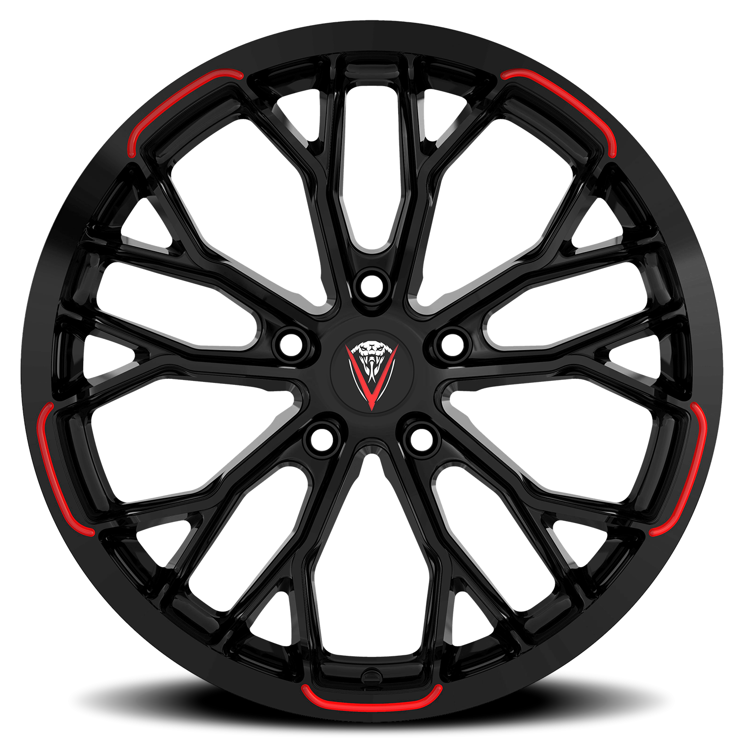 Venom Sport 53 wheel features size 18" x 8.5", Gloss Black / Red Milled Black / Red Milled finish, 5×100 bolt pattern, +35mm offset.