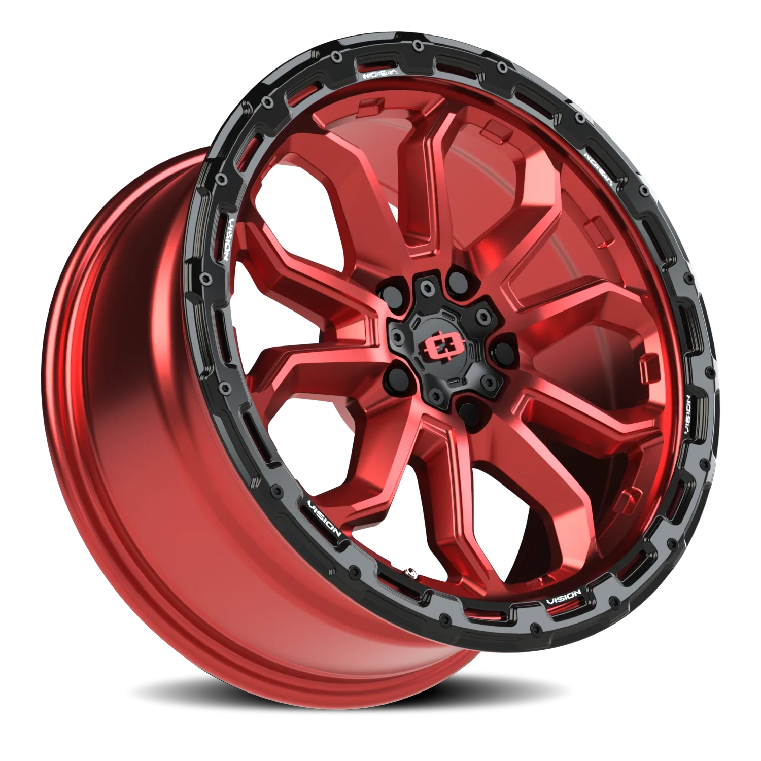 Vision 405 wheel features size 17" x 8", Gloss, Red Red / Black Lip finish, 5×120 bolt pattern, +30mm offset.