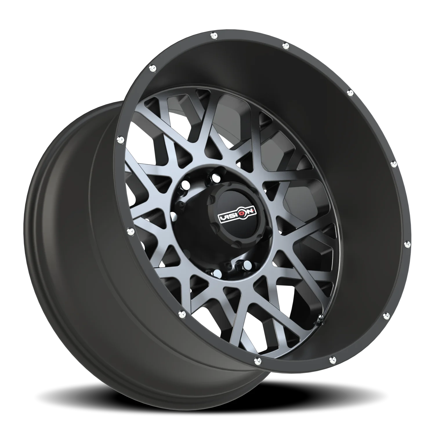 Vision 412 wheel features size 22" x 12", Anthracite / Satin Black Lip Anthracite / Satin Black Lip finish, 8×170 bolt pattern, -51mm offset.