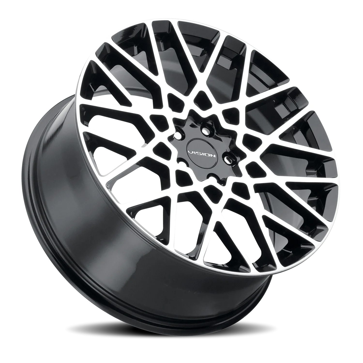 Vision 474 wheel features size 20" x 8.5", Black, Gloss Black / Machined Face finish, 5×120 bolt pattern, +35mm offset.