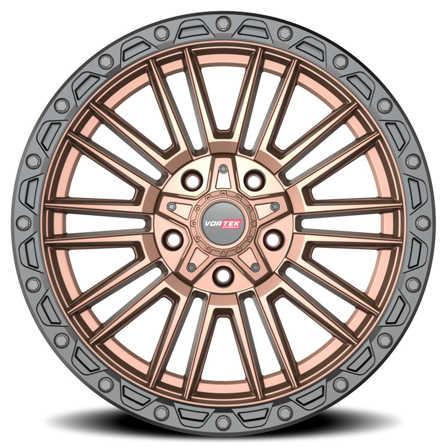 Vortek Offroad VRT-604 wheel features size 17" x 9", Bronze, Matte Bronze / Black Bead Ring finish, 5×127/5×139.7 bolt pattern, -12mm offset.