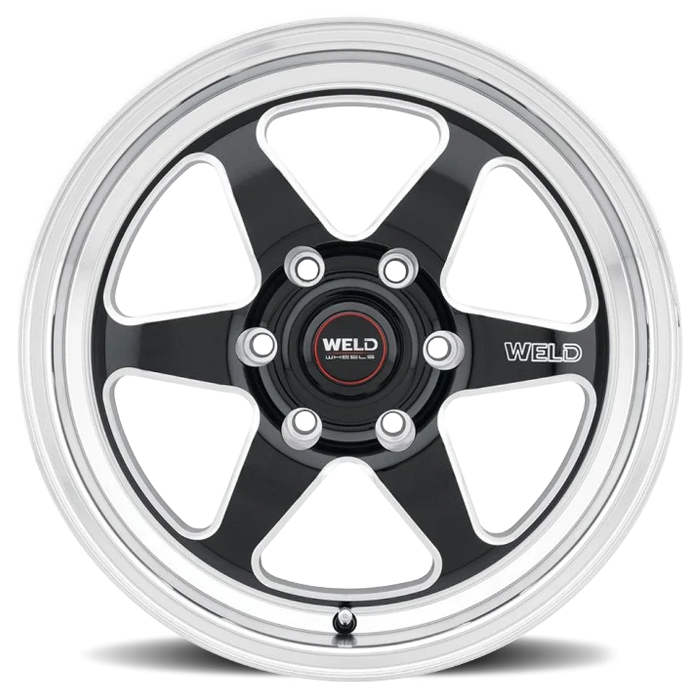 WELD Ventura 6 Drag S156 wheel features size 20" x 10", Black, Gloss Black / Milled-Diamond Cut Lip finish, 6×135 bolt pattern, +38mm offset.