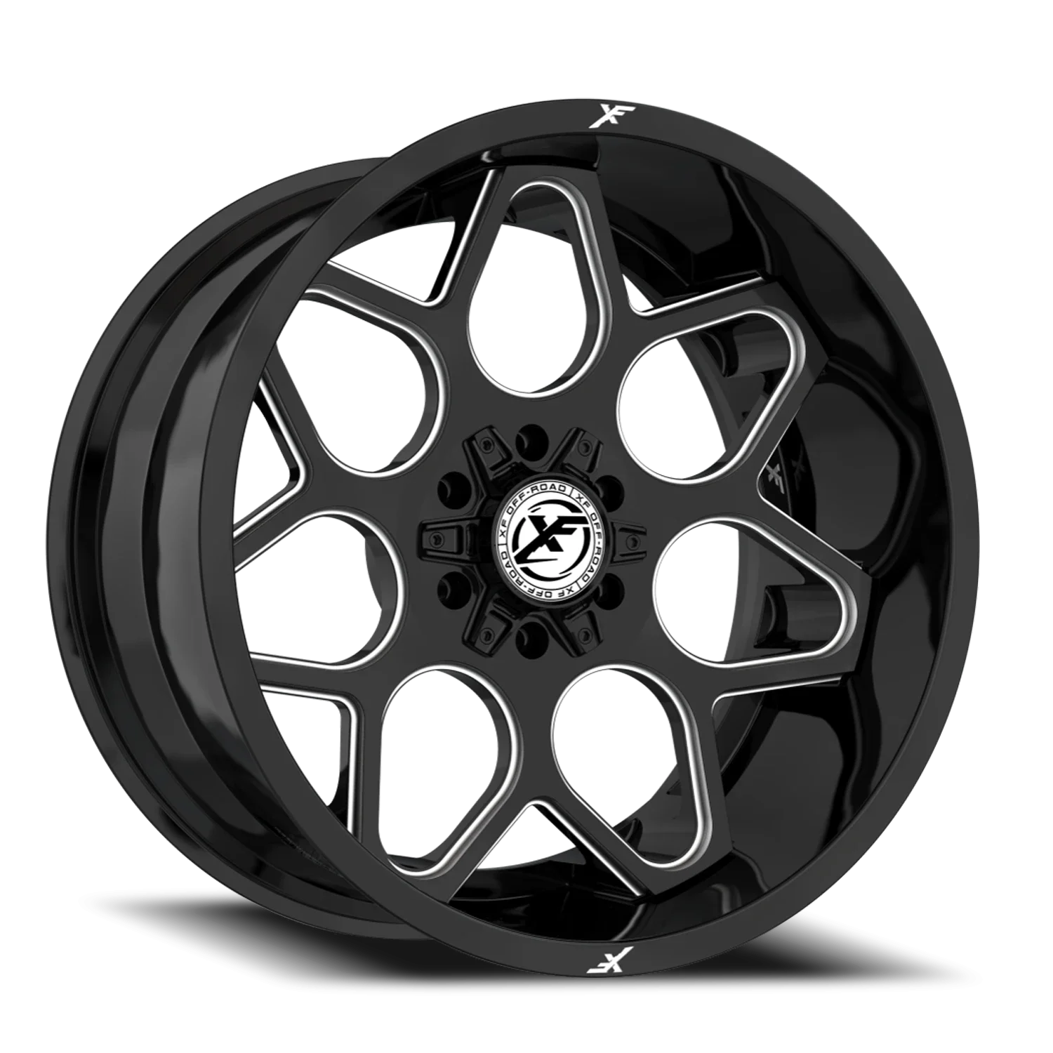XF Off-Road XF-233 wheel features size 20" x 9", Black, Gloss Black / Milled finish, 6×135/6×139.7 bolt pattern, +12mm offset.